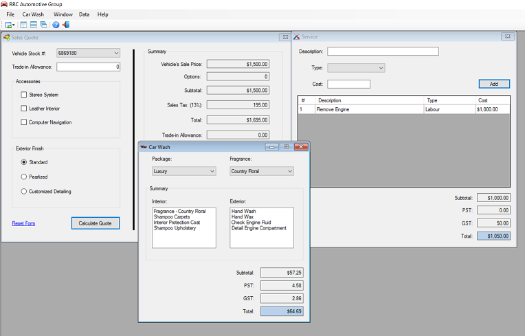 Through course work at Red River College I have experience designing console applications in Java as well as windows form projects in C# and Visual Studio. The programs have covered inventory, grading calculations, simple bank account creation, validation and error handling as well as synchronizing with databases.